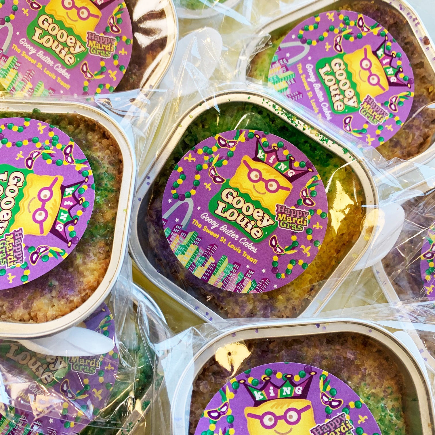 Whether you're on the streets of Soulard or celebrating at the office, GOOEY LOUIE® gooey butter "King" cakes are the sweet addition to the Mardi Party!