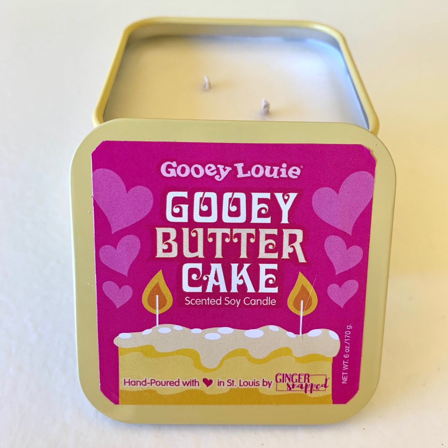 We've teamed up with GingerSnapped Candles to create a deliciously delightful gooey butter candle (ZERO CALORIES!). Light this handcrafted 6 oz soy wax candle and transport yourself to our little gooey butter bakery. The scent is that yummy, buttery, rich and sweet! Crafted with soy wax and cotton wicks, this candle ensures a long life and a clean burn.