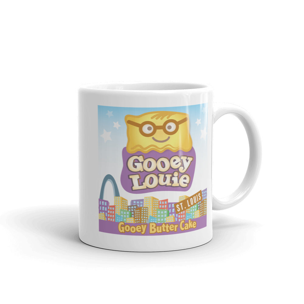 Experience St. Louis in every sip with our Gooey Louie Mug! This sturdy and glossy ceramic mug is the perfect companion for enjoying your favorite cup of coffee or tea alongside our mouthwatering gooey butter cake! The mug showcases our beloved Gooey Louie against a vivid St. Louis skyline. The mug is both dishwasher and microwave safe, making it a functional and stylish addition to your collection.